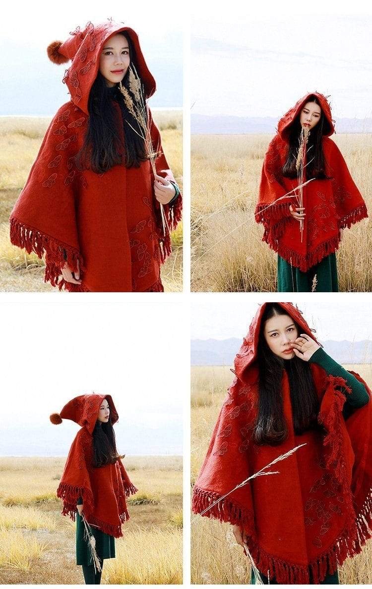 Belle Red Rose Embroidered Hooded Cape | Mandala