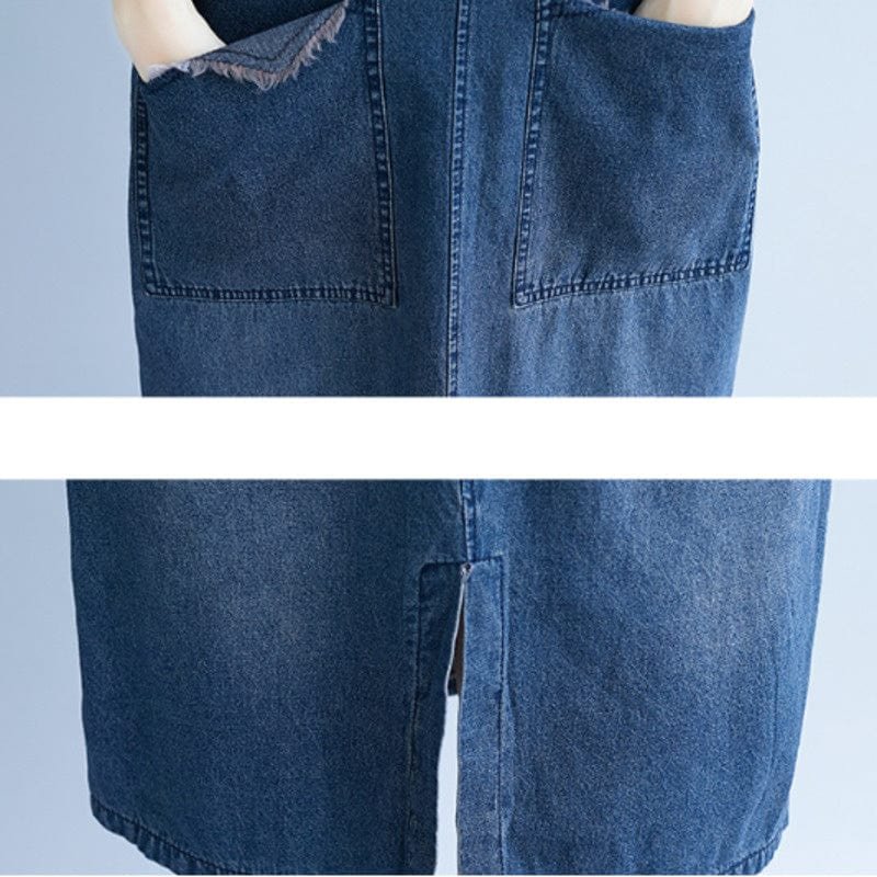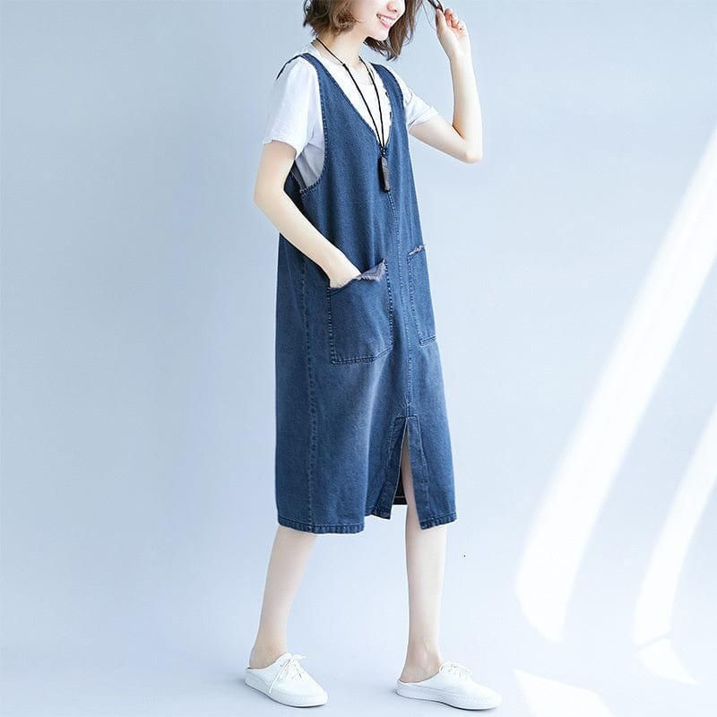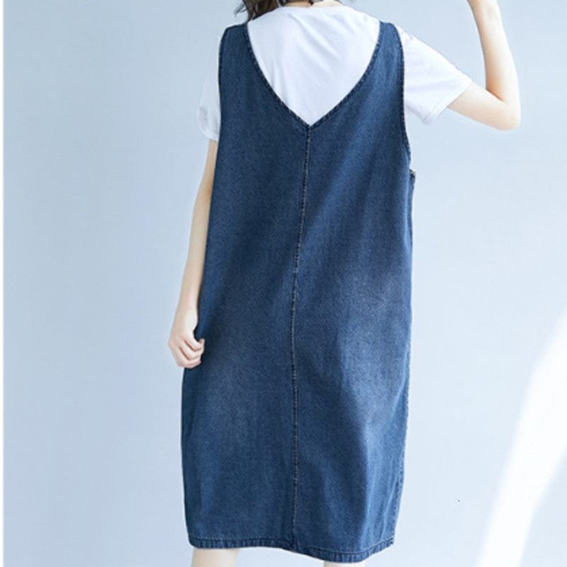 If you want a denim piece that will compliment your basic tees. blouses. and cardigans. this loose. denim. sleeveless overall dress with pockets would be a great addition to your closet. Its breathable fabric makes moving around comfortable and easy. If you want to dress it up a bit. wear it with tight leggingsand a coat for a glammed up look. Ankle boots. sneakers. or even flatswith work well with this simple and casual dress.