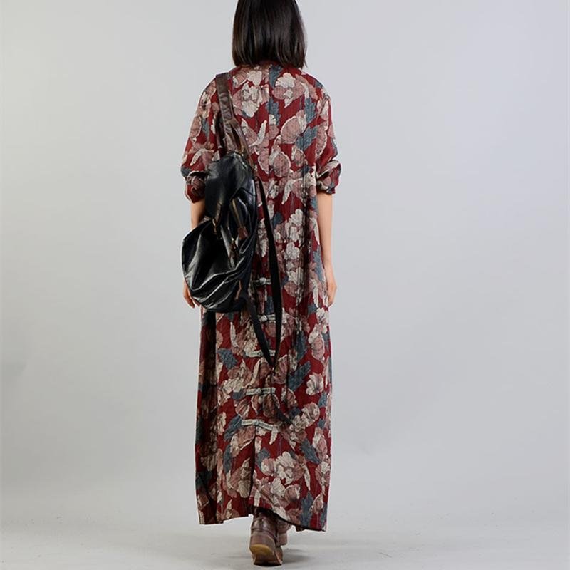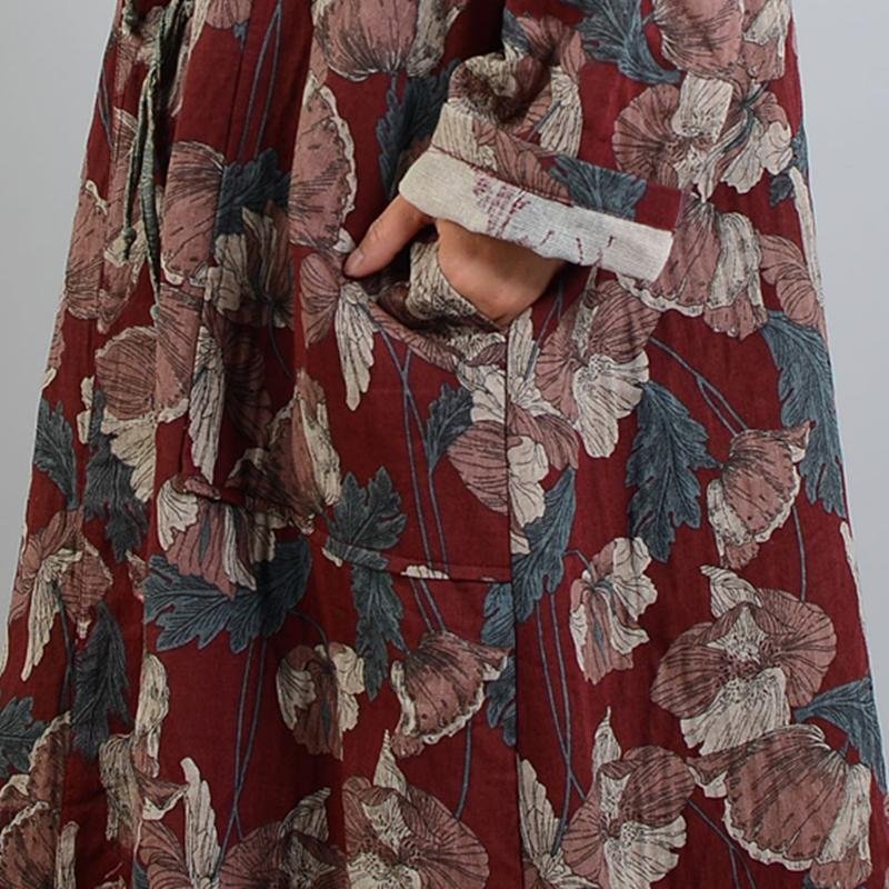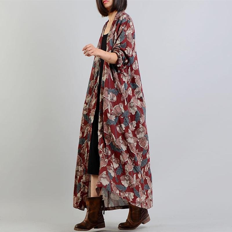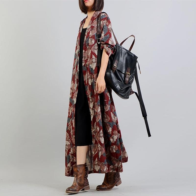 Step into the spring season in style with our Little Burgundy floral printed trench coat. This lightweight. vintage linen coat has an Asian influence in its design. Two button closure creates a small V neck on this extra long trench coat with pockets. This simple loose-fitting piece can add some elegance to a casual pair of black slacks and basic cotton top. Let the world see your beautiful feminine side in our new flowing floral spring trench coat. Available in one size.